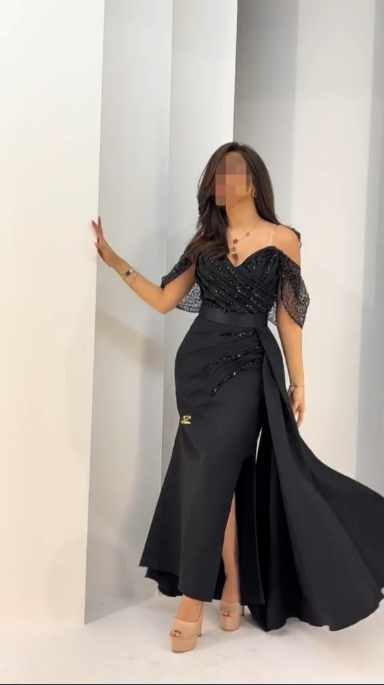 - فستان سهرة اسود فخم بجودة تصنيع عالية تحافظ على مظهر الفستان لأطول فترة