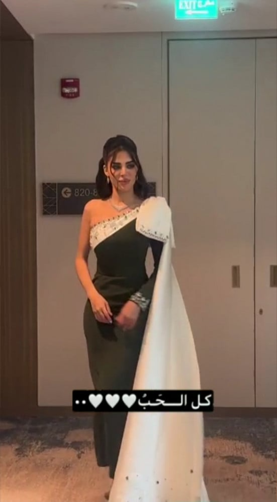 - لون زيتي أنيق يبرز جمال الإطلالة بأسلوب طبيعي