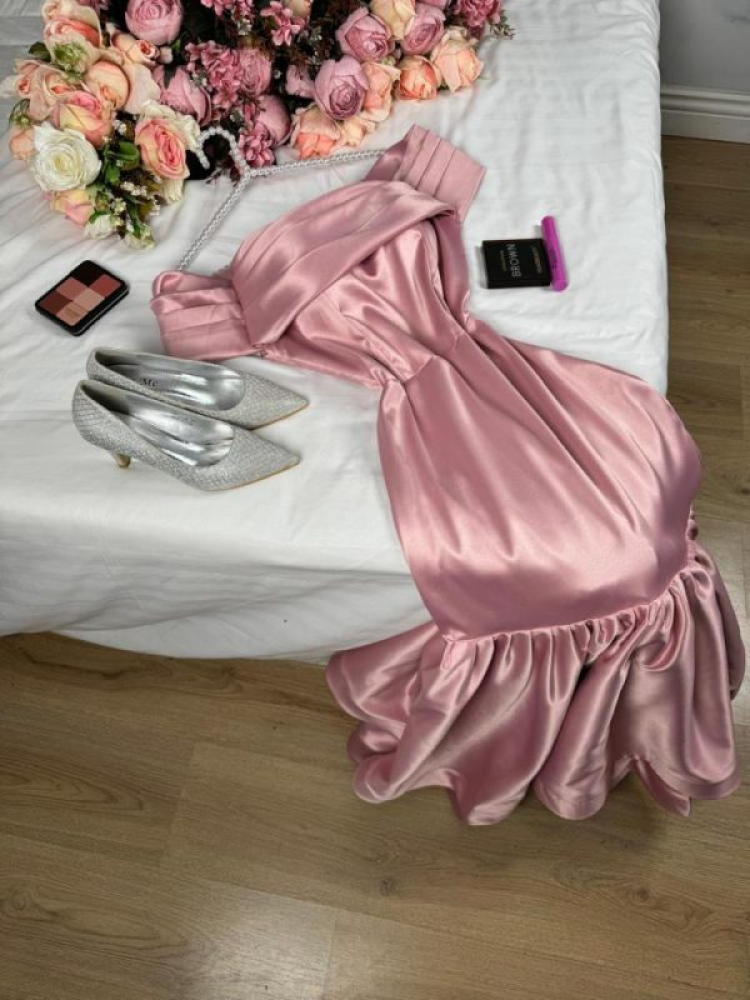 - اسم المنتج: فستان سهرة ميدي ناعم لحمي